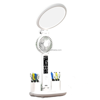 现代创意折叠式发光二极管台灯时间日期显示宿舍卧室风扇台灯时钟夜灯